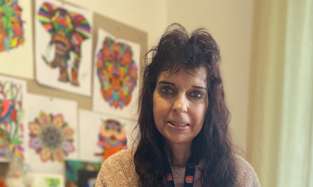 Sylvia heeft 2 kasten op haar kamer, één voor haar kleding en één voor haar creatieve spullen. Tweemaal per week bezoekt Sylvia de creatieve middagen die worden georganiseerd door 50|50 Workcenter op de locatie Hoog Buurlo. Sylvia laat zien wat zij zoal gemaakt heeft. Sylvia: ‘’Naast mijn behandeling ben ik zo ontzettend blij dat ik mijn creativiteit weer heb ontdekt. Zo doe ik bijvoorbeeld aan diamond painting en het inkleuren van platen. Nu tegen de Kerst ben ik druk met het maken van 3D kaarten die ik daarna borduur. Ik ben behoorlijk lang met een kaart bezig. Heel precies knippen en heel fijn borduurwerk, ja daar heb ik wel geduld voor! Ik word rustig van knutselen en tekenen.’’