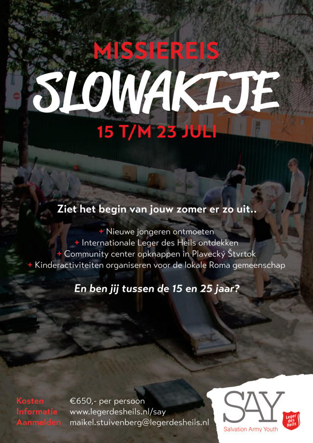 De reis zal 15 t/m 23 juli plaatsvinden. In Slowakije zullen we verschillende binnen- en buitenruimtes opknappen, activiteiten organiseren voor de lokale kinderen en contact maken met de buurt rondom één van de korpsen. Elke deelnemer spaart voor deze week 650 euro (door middel van crowdfunding of je eigen spaargeld) om zo de eigen reis te kunnen betalen en daarnaast lokaal de benodigde materialen te kunnen kopen.