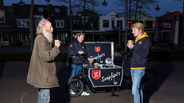 Het Leger des Heils staat op verschillende plekken in Nederland met een Soepbus (of -fiets!). Veel daklozen komen wekelijks langs voor een warm kopje soep en een praatje. Vrijwilligers helpen de daklozen door er gewoon te zijn. Daarnaast ben je, door goed te luisteren, een belangrijke schakel met (professionele) veldwerkers.
